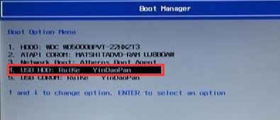 5、插入U盤啟動盤,重啟時不停的按下f12,打開Boot Manager,選擇USB HDD回車從U盤啟動,如截圖: