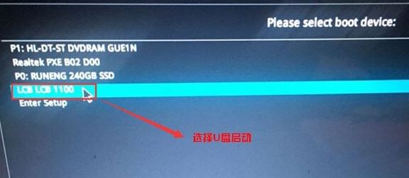 5、插入U(xiǎn)盤啟動盤,重啟按ESC選擇識別到U盤啟動項(xiàng),按下回車鍵: