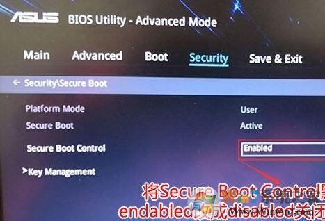 2、進入高級模式后,按→方向鍵移動到Security,選擇Secure Boot,然后回車進入把Secure Boot control選enabled改為disabled關(guān)閉安全啟動,裝win7必須關(guān)閉安全啟動,如下圖所示;