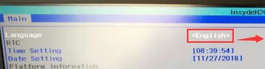 2、進入BIOS界面后,我們首先把BIOS語言改成“簡體中文”,如下圖所示;