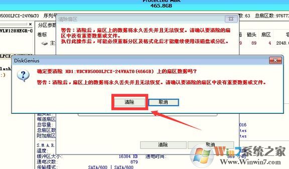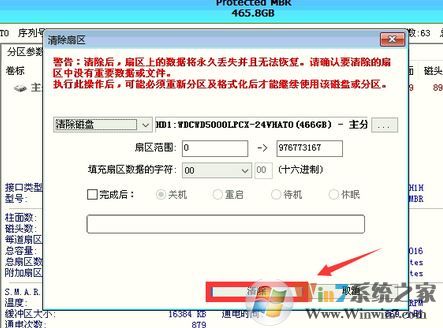3,接著會彈出警告提示,清除扇區(qū)會破壞數(shù)據(jù),我們這里點確定(注意要保存數(shù)據(jù)),如下圖所示: