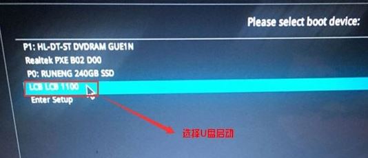 5、插入U(xiǎn)盤啟動(dòng)盤,重啟按ESC選擇識(shí)別到U盤啟動(dòng)項(xiàng),回車,如圖: