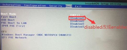 4、切換到Boot,把Fast Boot從Disabled改成Enabled,開啟快速啟動(dòng)設(shè)置U盤啟動(dòng),如圖: