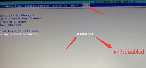 2、轉(zhuǎn)到Exit,把OS Optimized Defaults設(shè)置為Disabled或Other OS,如圖所示: