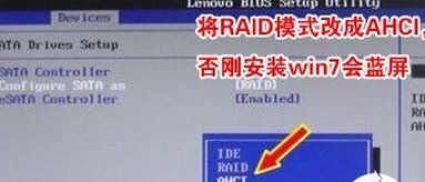 3、切將鍵盤移動(dòng)Devices選項(xiàng),把鍵盤移動(dòng)ATA Drive Setup回車,將configure SATA as中默認(rèn)的raid改成ahci模式,否剛進(jìn)PE后有可能認(rèn)不到硬盤,然后選擇F10保存設(shè)置,在彈出的選項(xiàng)中選擇YES,如下圖所示;