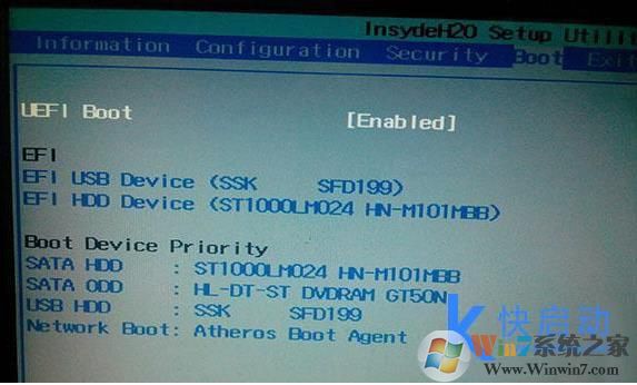 2、切換到Boot,選擇UEFI Boot回車設(shè)置為Enabled,比如聯(lián)想Y480;