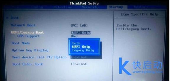3、thinkpad筆記本則在Startup下,把UEFI/Legacy Boot設(shè)置為UEFI Only;