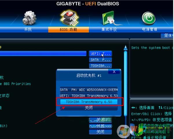 1、把制作好的u啟動(dòng)u盤(注意當(dāng)前使用東芝u盤)插在電腦usb接口上,然后打開技嘉主板電腦,在出現(xiàn)開機(jī)畫面時(shí)按DEL鍵進(jìn)入uefi bios界面,如下圖所示: