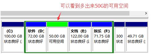 4、壓縮好之后,從出了一個(gè)50G的可用空間;然后可以先不用管它。