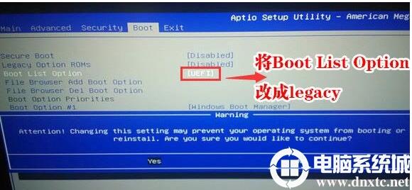 3、接著將boot list optaion的模式uefi改成legacy,如下圖所示;