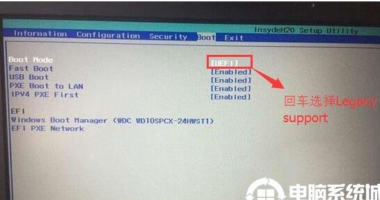 3、切換到Boot,把Boot Mode從UEFI改成Legacy Support;