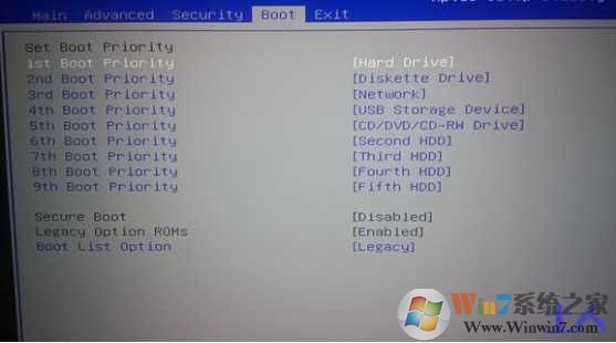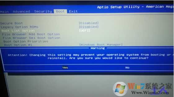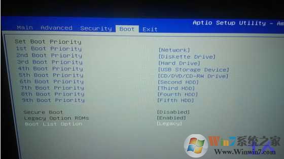 2、然后將boot list optaion的模式uefi改成legacy