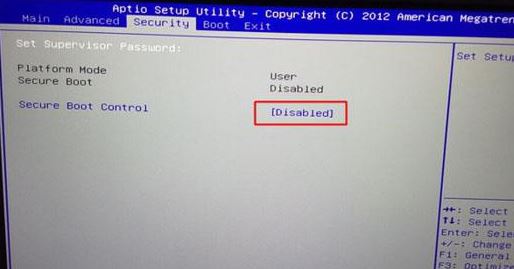 1、打開電腦電源,示后按F2進(jìn)入BIOS設(shè)置,在Security下把Secure Boot Control設(shè)置為Disabled關(guān)閉安全啟動(dòng),如下圖所示;