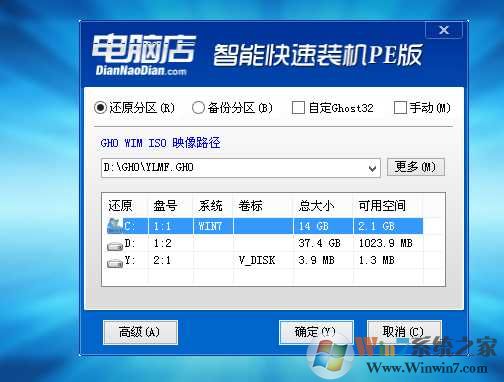 2、然后我們選擇Win7.GHO,安裝到C盤,確定;
