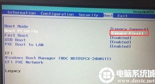 5、再把Boot Priority設(shè)置成Legacy First,按F10彈出窗口選擇yes回車;