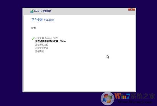 5、接下去的安裝過程就很簡單了,不需要你手動操作,最后設(shè)置一下Win10,就可以安裝完成了。