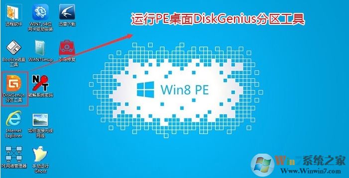 1、選擇U盤啟動(dòng)盤進(jìn)入PE后,在桌面上運(yùn)行DiskGenius分區(qū)工具,點(diǎn)擊菜單欄的【硬盤】,選擇【轉(zhuǎn)換分區(qū)表類型為guid格式】,然后保存更改,如下圖所示;