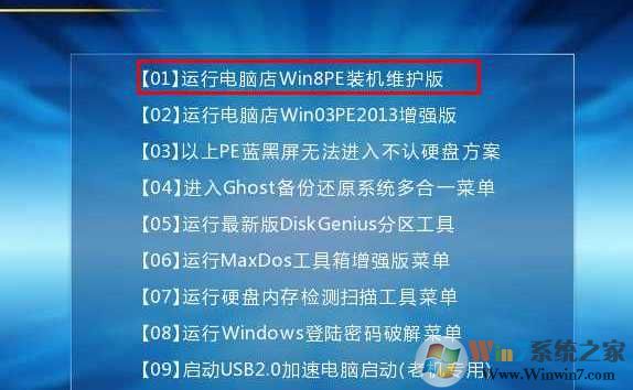 進(jìn)入U(xiǎn)盤啟動盤界面,再進(jìn)入WIN8PE中。