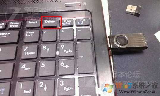 1,首先我們要先插上一個(gè)有引導(dǎo)的系統(tǒng)盤,然后找到鍵盤上的delelt鍵位,間接性按,進(jìn)去bios。