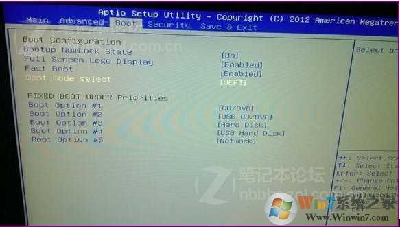 5、進(jìn)去bios之后依然選擇到boot這一選項(xiàng)開始調(diào)試u盤啟動(dòng)【記得u盤一定要有引導(dǎo),如果沒引導(dǎo)的話是沒用的】,選擇usb......這一選項(xiàng),回車鍵位,f10保存退出。
