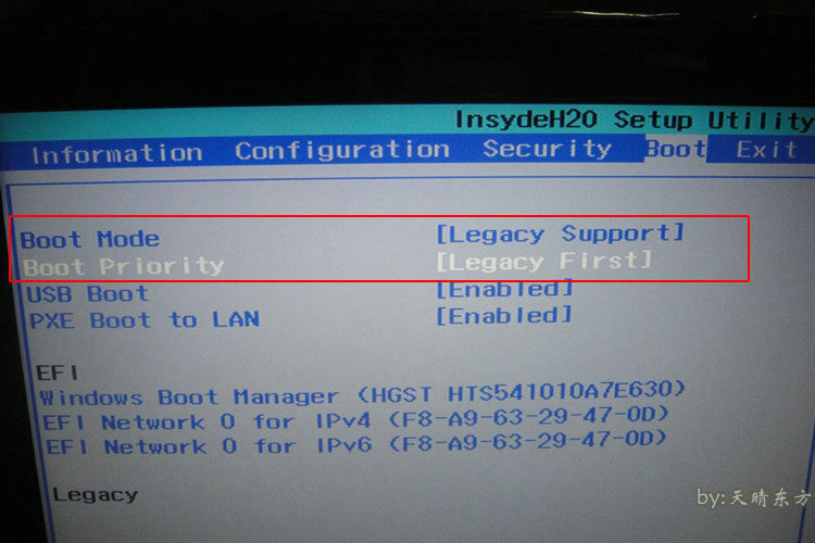 3、把紅框中的選項(xiàng)改成如圖所示,注意:先將第一項(xiàng)BOOT MODE改完,才會(huì)出現(xiàn)第二項(xiàng)boot priority