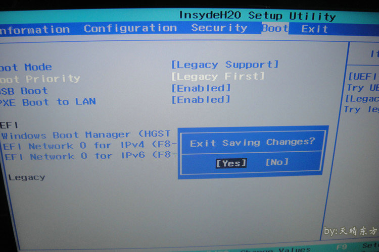 4、改完后,按F10,出現(xiàn)一個(gè)對話框,然后選yes,電腦會(huì)自動(dòng)重啟,重啟出現(xiàn)lenovo標(biāo)志的時(shí)候,按一下開關(guān),電腦會(huì)關(guān)機(jī)