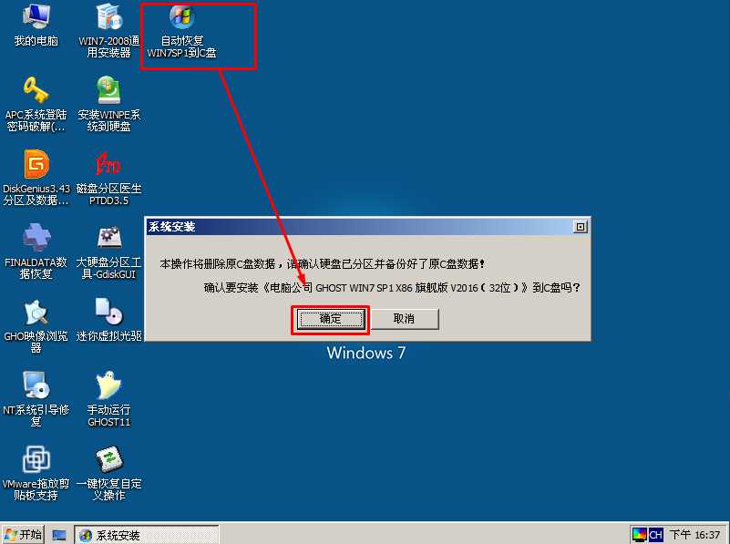 4、一般建議選擇2 運行Windows PE系統(tǒng),進入后點擊 安裝Win7系統(tǒng)到C盤 ;