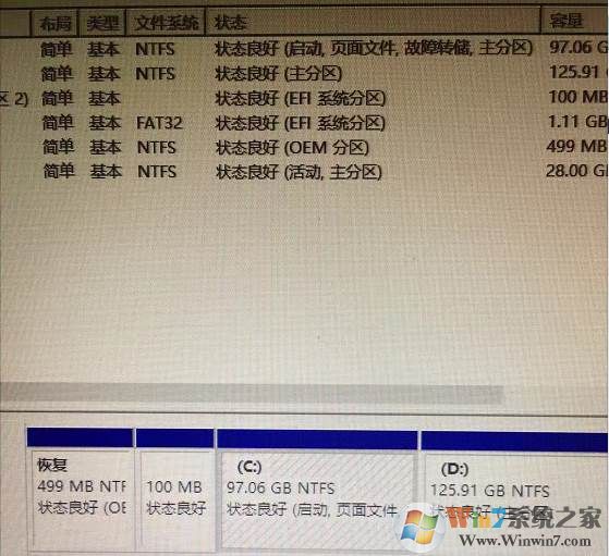 1、首先我們來看下小編是UEFI+GPT的機(jī)子,看磁盤分區(qū)就可以看出來