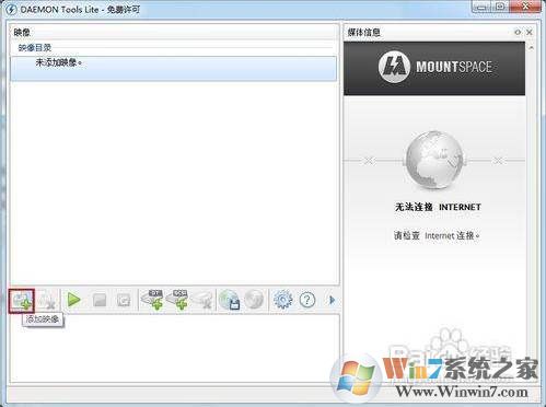 1、安裝好Daemon Tools之后打開,然后單點(diǎn)主界面中的“添加映像”按鈕,在彈出的對話框中選擇一個我們下載的映像文件,點(diǎn)擊“確定”完成添加。