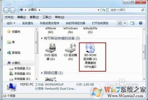 7、此時(shí)查看”我的電腦“,就會發(fā)現(xiàn)已經(jīng)成功虛擬出一個新的光驅(qū)盤符。然后就可以像物理光驅(qū)一樣使用虛擬光驅(qū)了。同時(shí)也就能打開光盤映像文件了哦。
