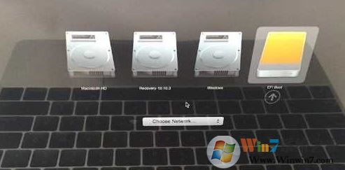 7、若重啟沒反應(yīng)則再次重啟,重啟的時(shí)候按住Option鍵,等待出現(xiàn)選擇啟動(dòng)的磁盤,選擇U盤啟動(dòng)盤即可開始安裝!