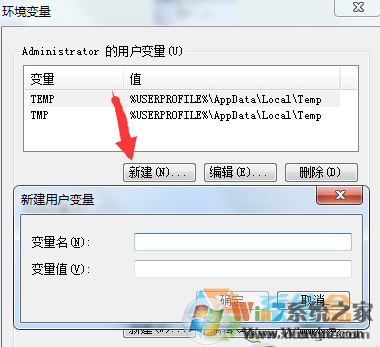 3、在用戶變量下方點擊“新建”,輸入用戶名%path%,以及變量值C:/windows/system32,點擊確定;