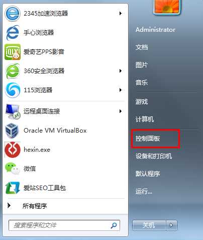 1、從開始菜單打開控制面板;
