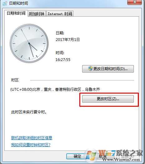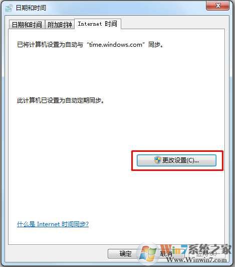 4、確定后,我們再到internet時間,點擊更改設(shè)置按鈕;