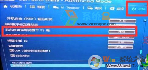3、再次進入到BIOS,找到“右出現(xiàn)錯誤等待按下F1鍵”然是包含 F1 的條目,然后關閉或選擇為 Disable