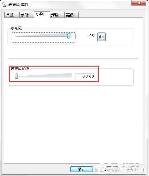 4、再點(diǎn)擊“級(jí)別”到該選項(xiàng)卡下,把“麥克風(fēng)加強(qiáng)”調(diào)為0.0dB,可以適度調(diào)節(jié)麥克風(fēng)音量。