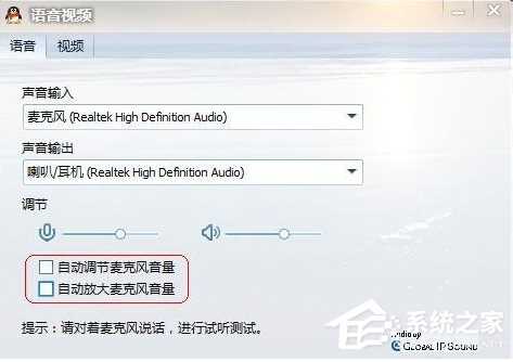 8、之后把語音設(shè)置“調(diào)節(jié)”下的“自動(dòng)調(diào)節(jié)麥克風(fēng)音量”以及“自動(dòng)放大麥克風(fēng)音量”方框內(nèi)“鉤去掉”;
