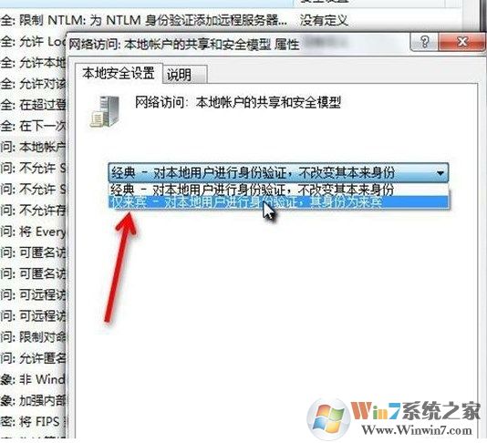 9、然后我們依次點(diǎn)擊:本地策略—安全選項(xiàng)—網(wǎng)絡(luò)訪(fǎng)問(wèn):本地賬戶(hù)的共享和安全模型,并雙擊“網(wǎng)絡(luò)訪(fǎng)問(wèn):本地賬戶(hù)的共享和安全模型”