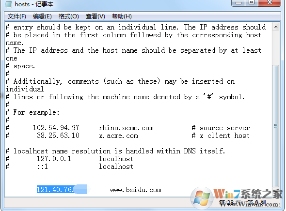 再來(lái)一個(gè),如下圖,我們把百度的網(wǎng)指定向到121.40.76.* 這個(gè)IP上。