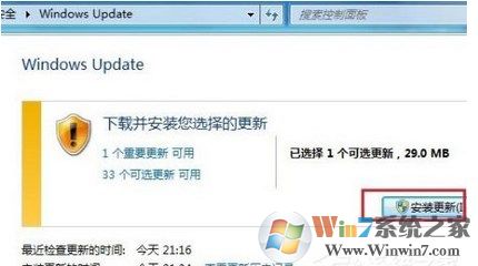 6、確定后出現(xiàn)當前窗口,選擇安裝更新。