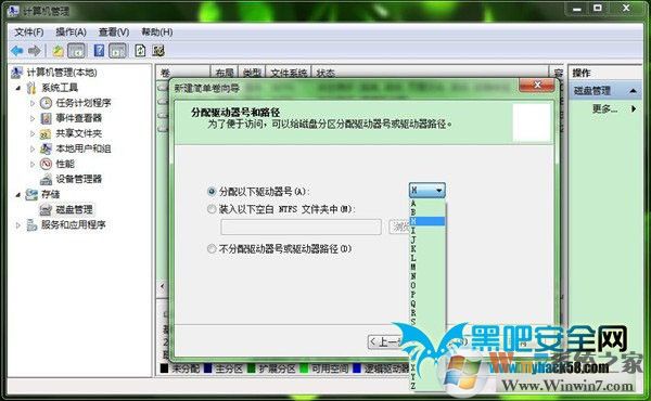 10、選擇驅(qū)動器號,已經(jīng)過濾現(xiàn)有驅(qū)動器號,可以在A-Z中自己選擇,再點擊“下一步”。