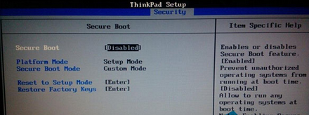 1、開機,然后按快捷鍵進入到bios設(shè)置界面,切換到security選項,通過鍵盤上的上下方向鍵選擇“secure boot”選項,接著按Enter鍵,在彈出的窗口中選擇“Disabled”,如下圖所示: