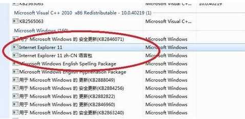 4、找到“Internet Explorer 11”點擊雙擊即可卸載;