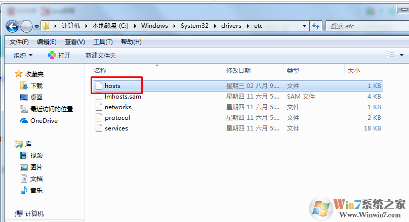 1、在c盤C:\Windows\System32\drivers\etc文件夾中找到hosts文件