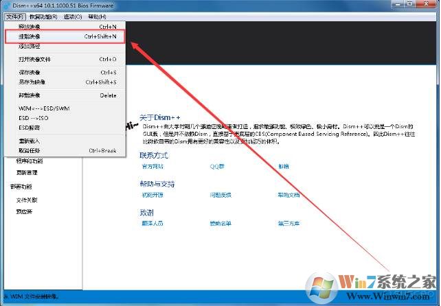 4、打開Dism++ 右上角點擊文件--- 掛載映像