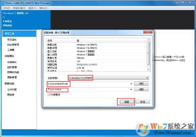 5、這個install.wim 是win7 多鏡像 版本 里面有家庭版,家庭高級版,專業(yè)版,旗艦版 我們選擇旗艦版 釋放路徑就是我們剛剛新ceo 文件夾