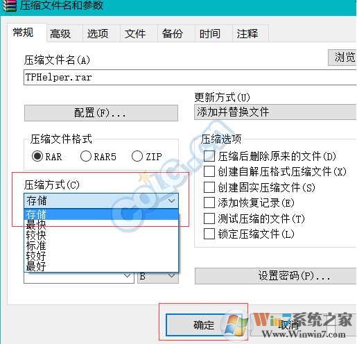 壓縮方式選存儲(chǔ),點(diǎn)確定