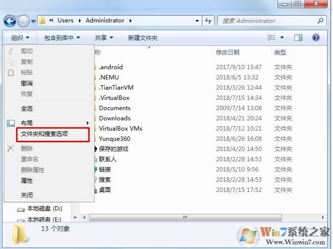 6、點(diǎn)擊“組織”——"文件夾和搜索選項(xiàng)";