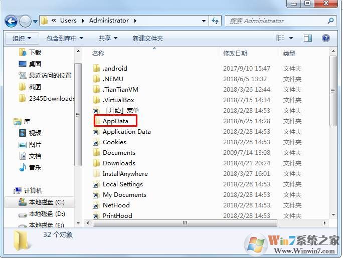 5、其實(shí)Appdata文件夾就在這里了,但是我們看不到。
