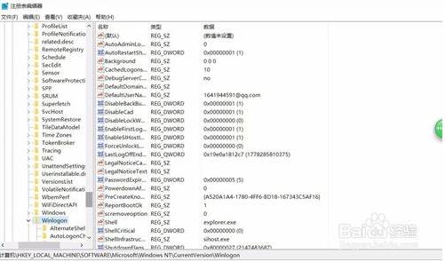 4、然后定位到exploer.exe服務(wù)絕對(duì)路徑;HKEY_Local_Machine--Software--Microsoft--Windows NT--CurrentVersion--Winlogon